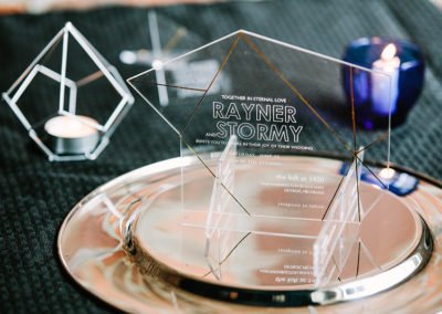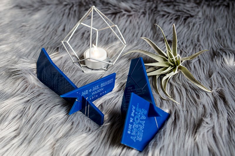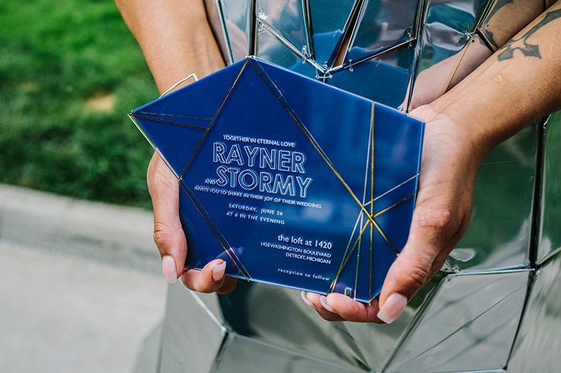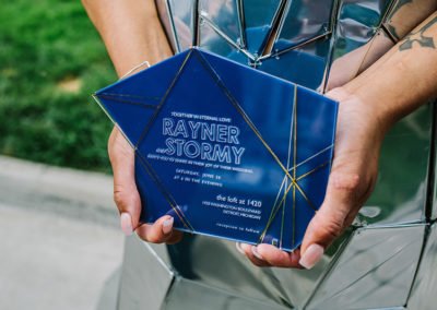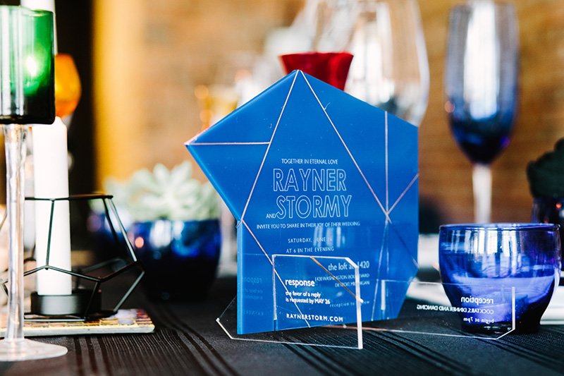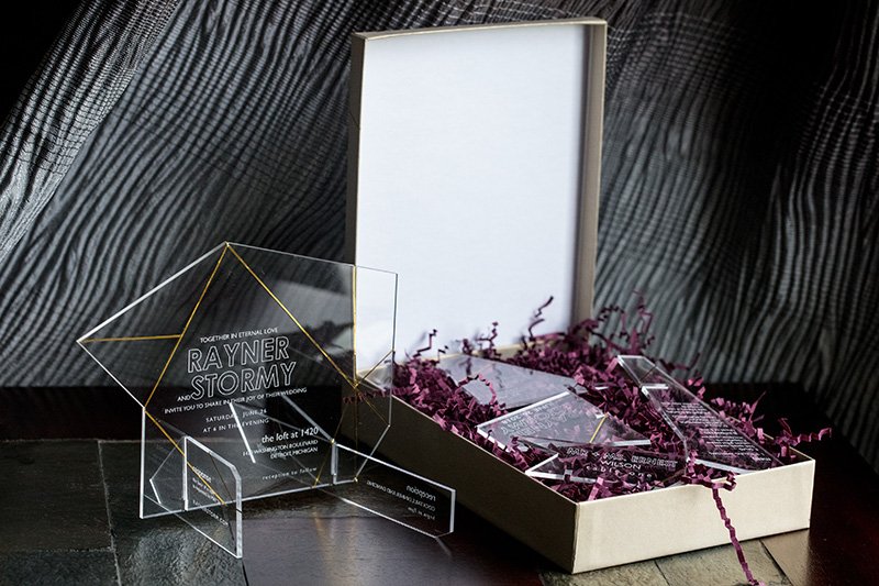 Our invitations create reactions in the best way. If you want to make an impact from the moment your wedding invitation hits your guests’ mailboxes, consider materials like wood or the hundreds of varieties of acrylic. Laser-cut and laser-engraved, these invitations push the envelope way beyond what paper and ink can.
