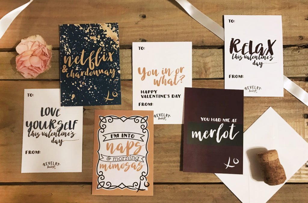 This year, to commemorate Valentine’s Day, I created two sets of galentine designs, valentine’s for your best gal pals. I love getting mushy valentine’s day cards, and I used to love when we’d pass valentines around in grade school. I’d save the best one for my crush, making sure he got the best candy, or my favorite design of the set. My galentines are modeled after classroom valentine’s in theory, but with a grown-up theme, wine and profanities.