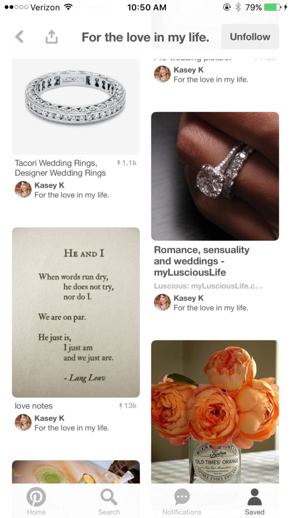 Here is a screenshot of my wedding Pinterest board before I was engaged.
