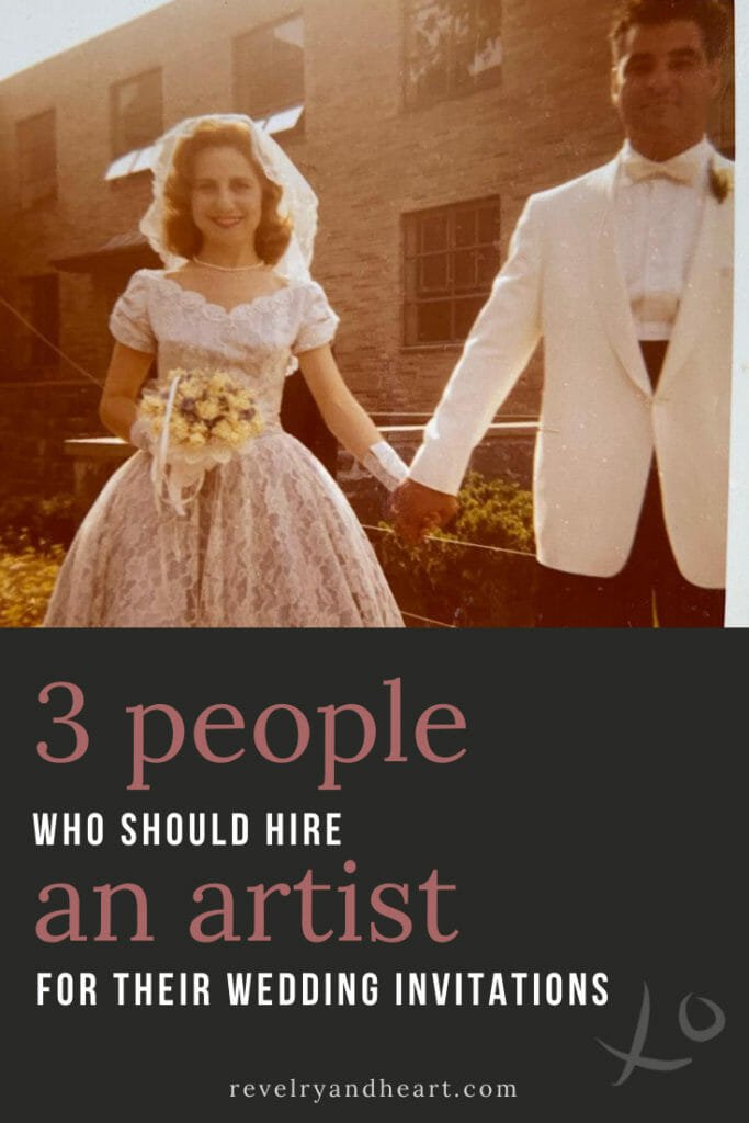 If you’re the one flipping nostalgically through your grandparents wedding albums and want to create something your own grandchildren will treasure, a custom invitation with an artist is a great fit. A one of a kind design that was commissioned for you will be treasured for generations. Imagine how your family will feel when they receive a piece that perfectly encapsulates your love and all the details that make your story special.